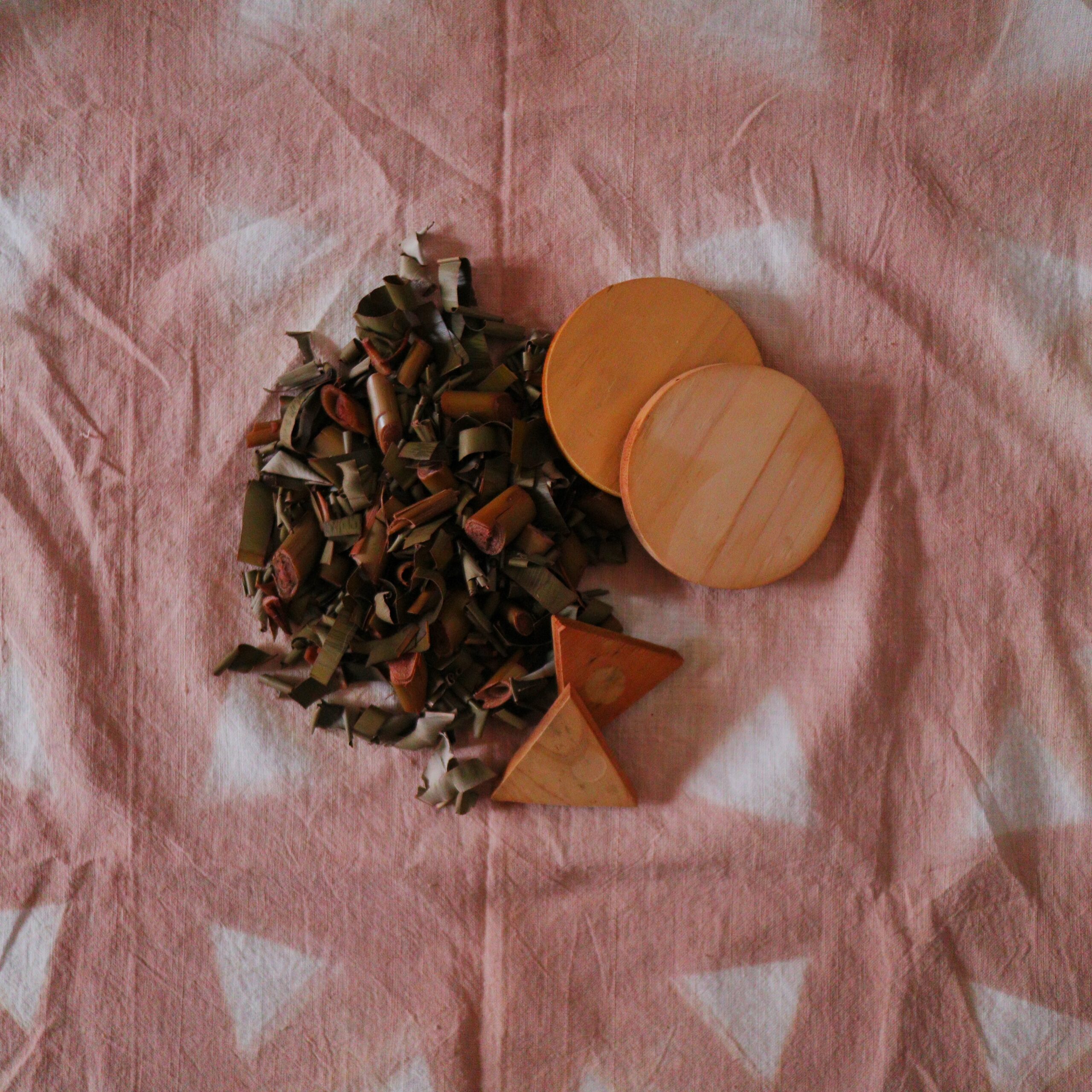 〇 や △ の 木 の 板 を 使 っ て